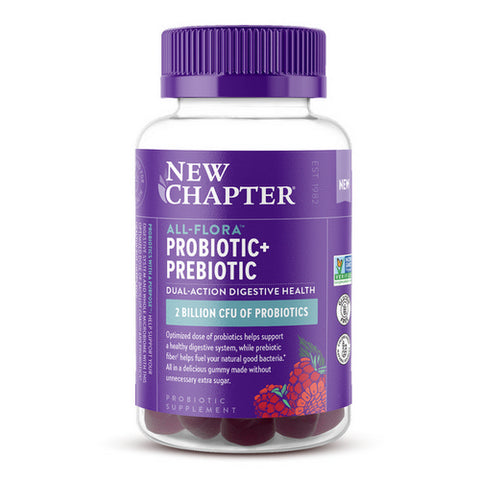 All-Flora Probiotic Plus Prebiotic by New Chapter blends probiotics with prebiotics for your gut health. This product contains a variety of beneficial strains to support digestive comfort and balance. It's made from whole foods and is designed to nourish your gut flora.