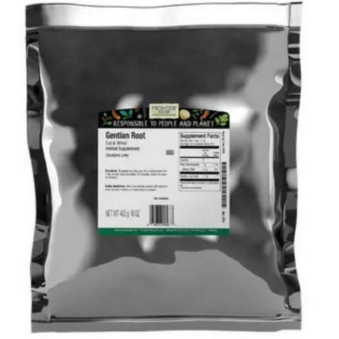 Gentian root cut and sifted referred to as one of the most bitter of the bitter, frontier genitan root grows in mountainous regions throughout the world and takes 7 to 10 growing seasons to mature. Used as the executive flavor in vermouth, this herb has been used for more than 2,000 years, primarily in digestive bitters and teas.