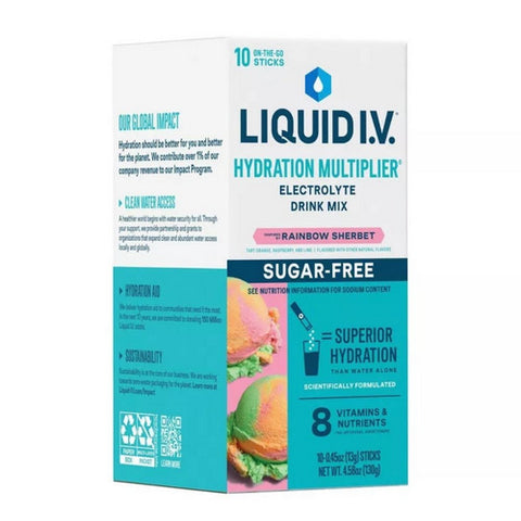 Liquid I.V, Hydration Multiplier Vegan Powder Rainbow Sherbert, 10 Count